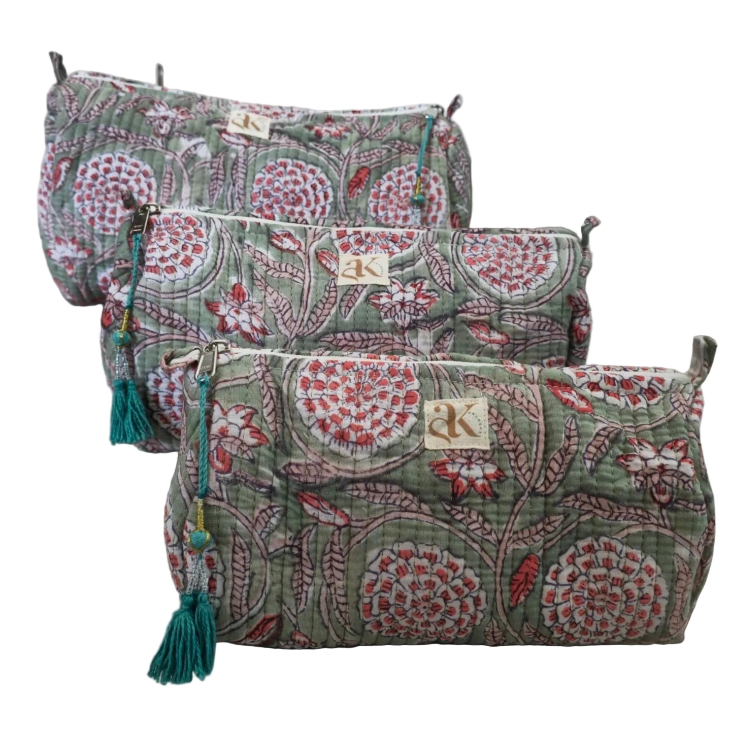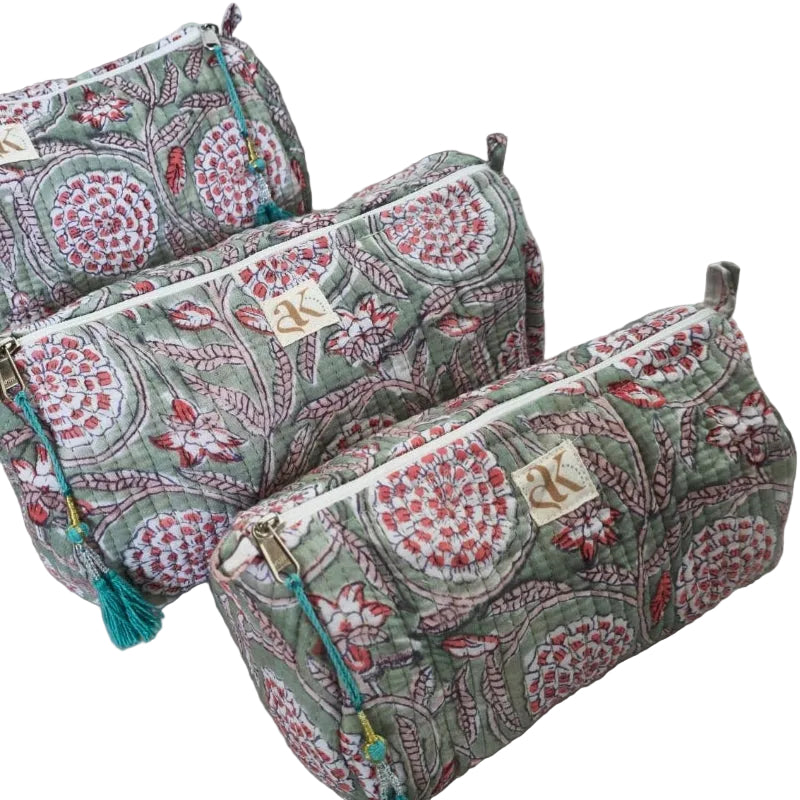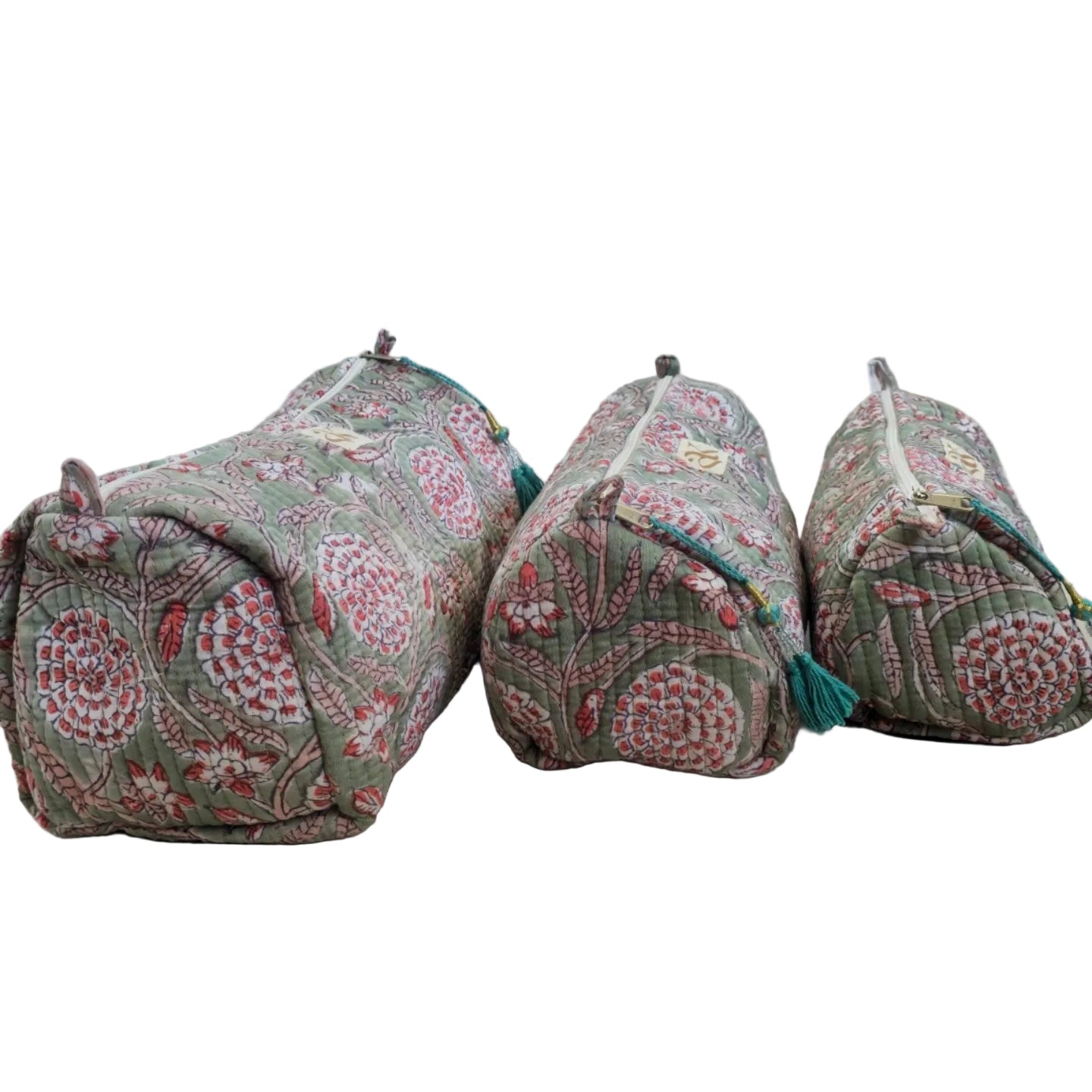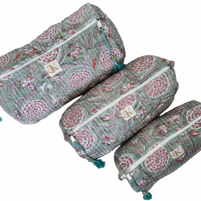 Kit de 3 cosmetiqueras 100% de algodón de diferentes tamaños.