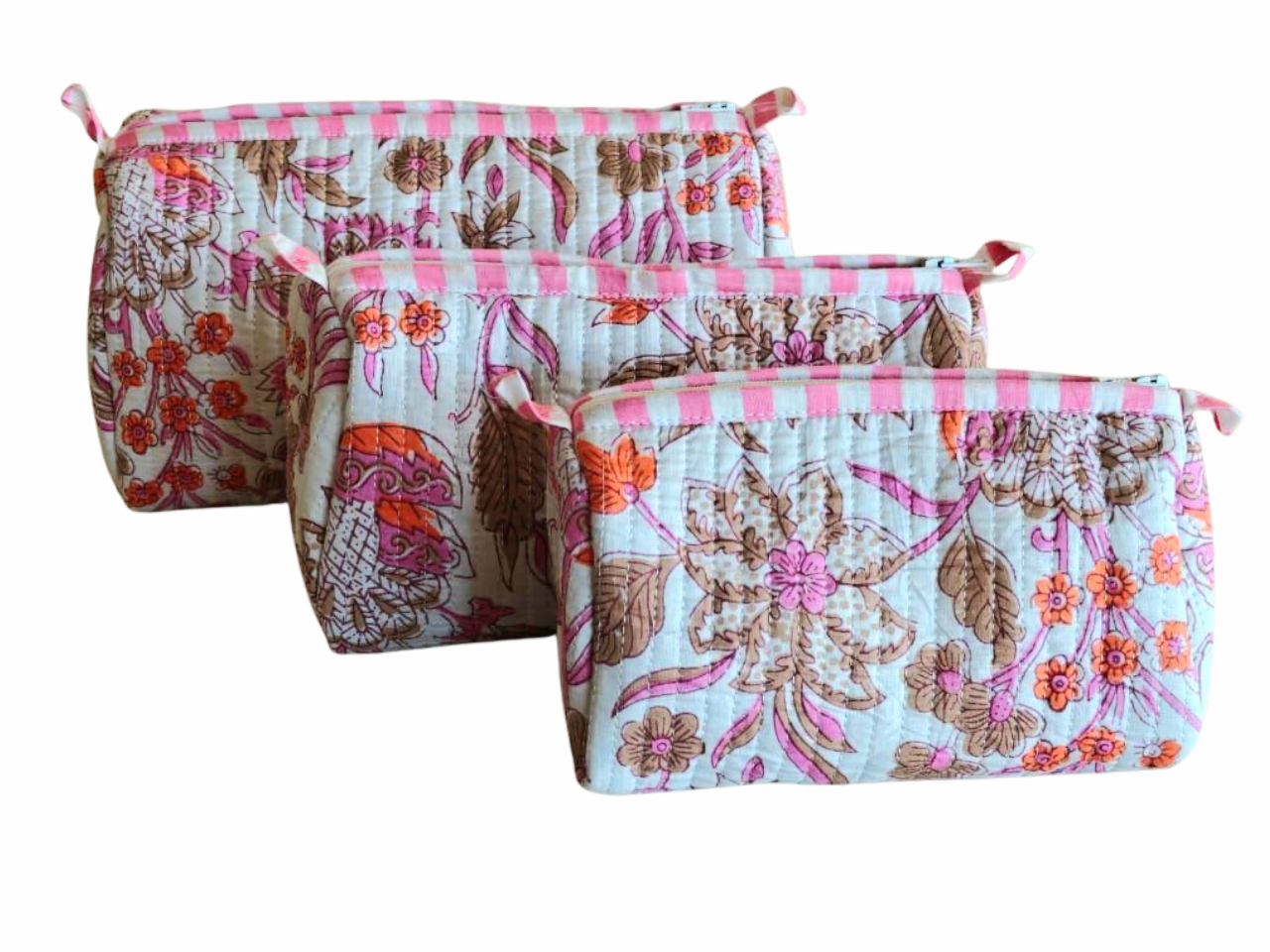 Kit de 3 cosmetiqueras 100% de algodón de diferentes tamaños.